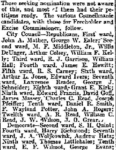 …continued… William J. Hurlock - William Schmid - Thomas Sink - A. Lincoln James William Schregler - Henry C. Moffett - john brothers - william c. horner Arthur Colsey - Anson Kelley - robert t. abbott John H. Vickers - Frederick A. Finkeldey "Indian Bill" May - Eugene McCafferty - Dr. William S. Jones |