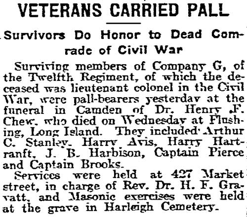 Henry F. Chew - Harry Avis - Harry Hartranft J.B. Harbison - Newton Brooks - Captain Pierce Rev. Dr. H.F. Gravatt - market street - Arthur Stanley |