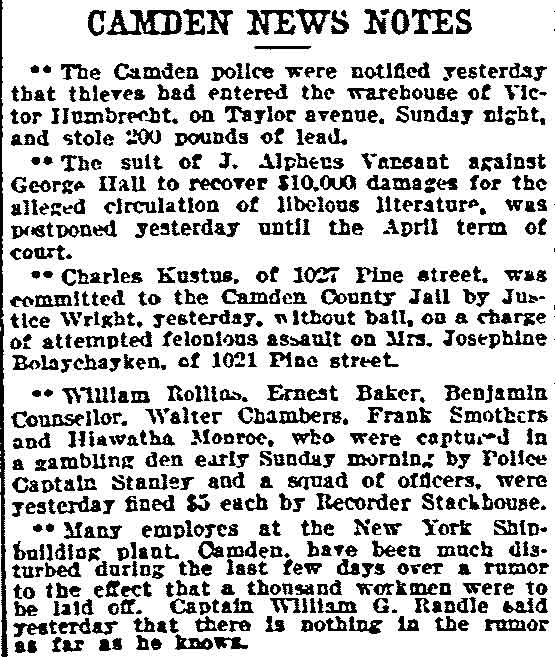 Arthur Stanley - Charles Fordyce - Kaighn Avenue |
