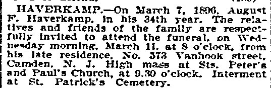 1894-1895 Camden City Directory was compiled. The elder Haverkampf was