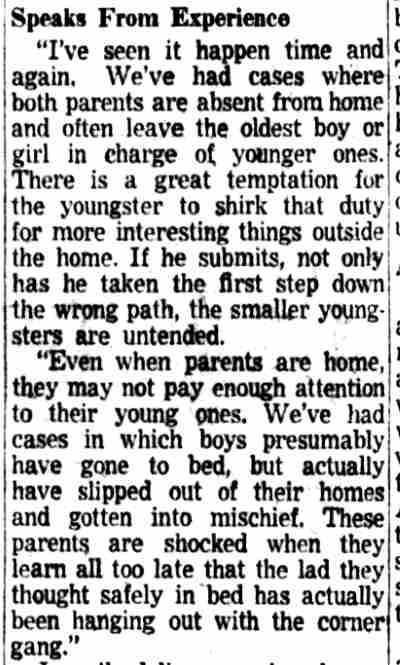 YOUTH ROBS SUITE IN APARTMENT HOUSE A youthful thief with a: penchant for women's silk undies is being sought by police for the robbery of a suite in the Helene Apartments, Third and Cooper Streets. The youth was seen by other occupants of the apartment house going down the Third Street fire escape but they did not realize he was a robber until Mrs. Jesse Farrow arrived home to find the apartment ransacked. She told City Detective Pfleiderer yesterday that the thief took a light cowhide suitcase in which he packed women's clothing, six pairs of new nylon stockings, three nightgowns and a pair of pajamas.. |