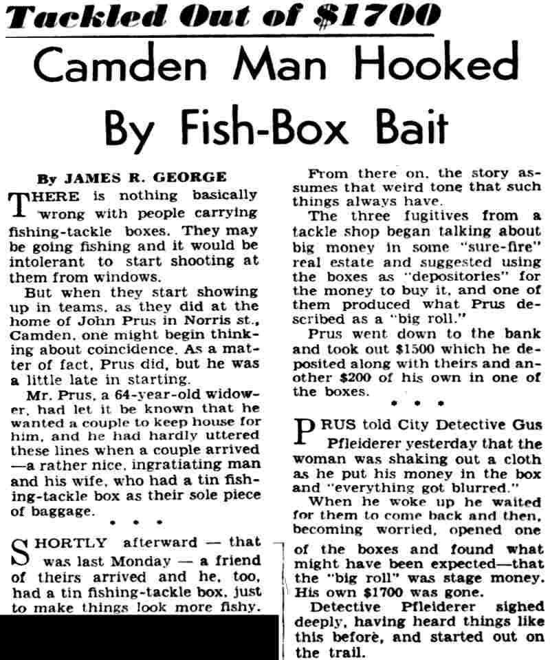 Phila. Bound Passenger Charged With Fraud Here and in 2 Towns Arrested on a Philadelphia-bound bus Saturday night, William Epstein, 35, of 1021 Clinton street, Philadelphia, is being held by local police for passing worthless checks in Camden, Collingswood and Bridgeton. Bridgeton police notified City Detective Gus Pfleiderer that Epstein boarded a bus for Philadelphia after giving a worthless check for $25 to Mrs. Martha Bowen, a storekeeper, of 80 Commerce street, Bridgeton. Pfleiderer met the bus at Broadway and Market street at 7.30 p. m. and arrested Epstein. Later Epstein was identified by Miss Eleanor Jaeckel, florist, of 3702 Westfield Avenue, as a man for whom she cashed a worthless check for $16.50 on February 19. Nathan Bushman, 201 Broadway, told police Epstein gave him one for $13.50 last week. Collingswood police notified Pfleiderer that Epstein passed a bad check for $10 last week on Arnold Weiss, merchant, of 700 Haddon avenue, Collingswood. City Detective harry kyler said Epstein has served three years in the Eastern Penitentiary, Philadelphia, for the same offense. Pfleiderer said Epstein admitted passing bad checks here. |