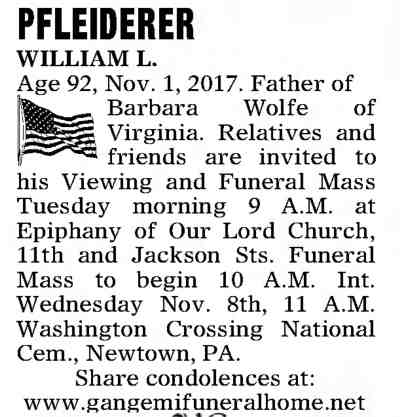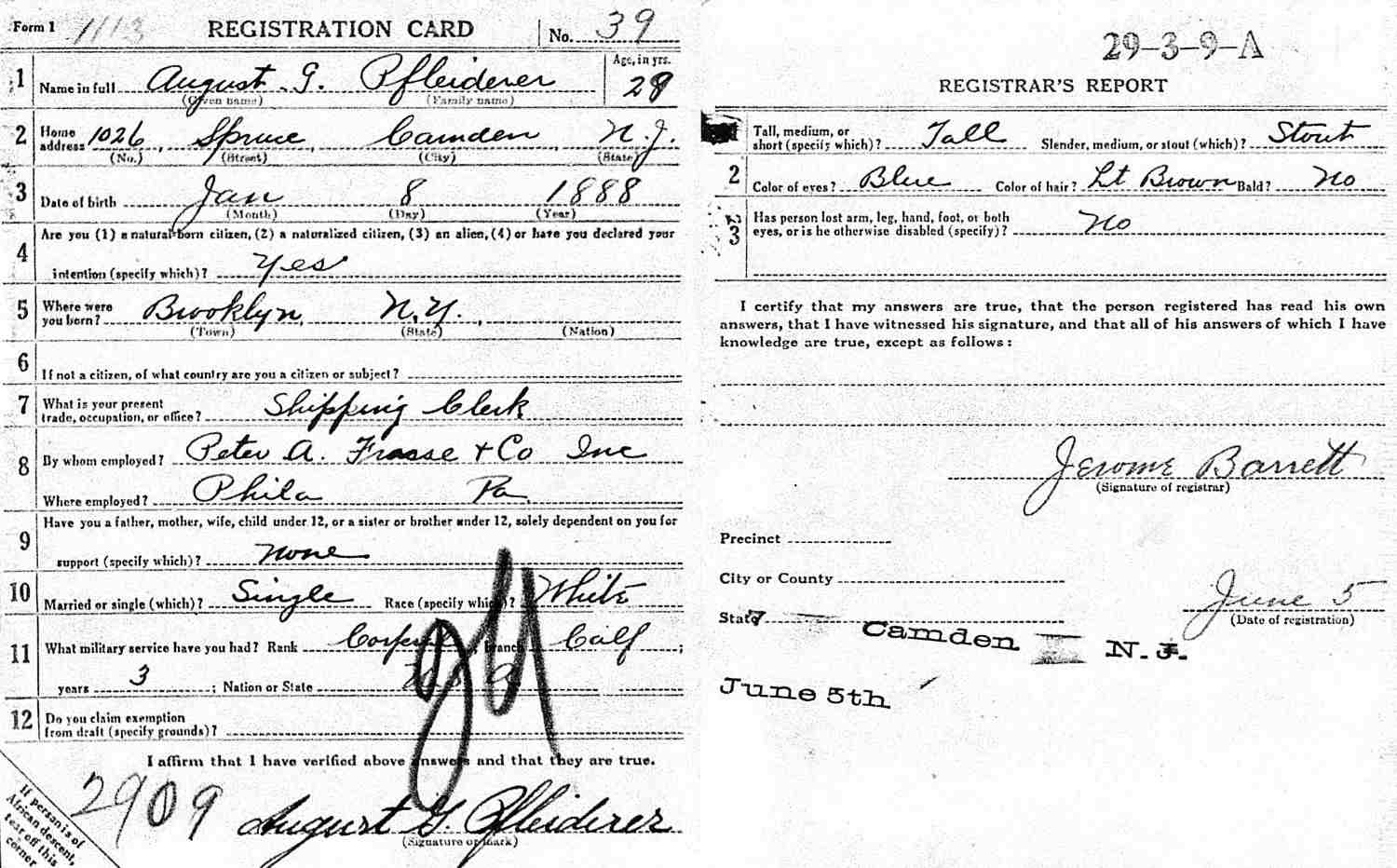 GUSTAV "GUS" PFLEIDERER was born in Brooklyn, New York on