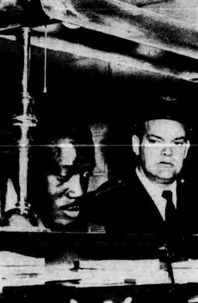 At Broadway & Chestnut Streets in South Camden. Member seen at center of photo is ladder company 2 Captain Leonard Iannelli just moments before his death. At left is Deputy Chief Austin Marks during Third Alarm, 1-14-1964. |