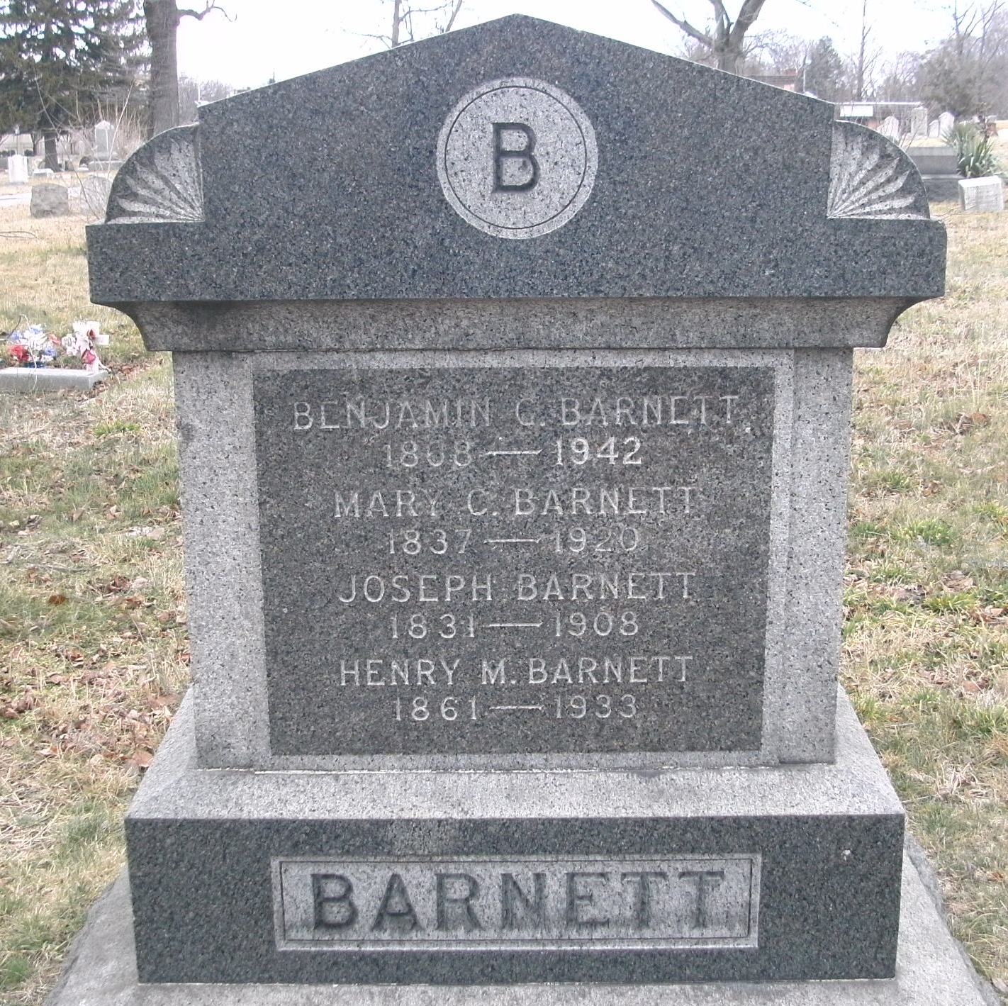 BENJAMIN G. BARNETT was born in Pennsylvania in July of 1869 to Joseph and Mary Barnett. When the Census was taken in 1880, the family lived at 518 North Third Street in Camden NJ, where Joseph Barnett worked as a ships carpenter. Also at home were older brothers Thomas, Henry " "Harry", and John, and younger siblings Sarah and Joseph. Benjamin Barnett would like his father, become a carpenter. Benjamin Barnett was single and living in South Camden at 512 William Street, the home of his brother Harry, in the summer of 1900. His brothers Joseph and John also resided there, as did John's wife Mary and their three children. Benjamin G. Barnett, his parents and his brother Henry had established residence in Ocean City NJ by 1906. Benjamin G. Barnett's father Joseph died in 1908, and his widowed mother had made Ocean City her permanent home by 1910. Benjamin G. Barnett moved to Ocean City NJ once and for all around 1920, his mother Mary passing away in that year. He was living there with his brother Henry in April of 1930, when the census was again enumerated. Henry passed away in 1933, By the time Benjamin G. Barnett passed away, on March 31, 1942 he had acquired a great deal of real estate, and was able to spend his winters in Florida. He kept his Camden ties, remaining a member of the Wyoming Tribe of the Improved Order of Red Men. He was survived by his brother, John Barnett. Benjamin G. Barnett was buried at Evergreen Cemetery in Camden, with his parents and brother Henry. Older brother Thomas Merritt Barnett practiced law in Philadelphia. He died in 1890 of pneumonia. His son, Dr. Frank T. M. Barnett became a dentist, practicing at 710 Line Street from the 1920s into the late 1950s. He passed away in April of 1959. |