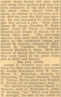 …continued… Committee of 100 David Baird Sr. - E.G.C. Bleakly - Cooper B. Hatch Harry B. Kramer - Lewis H. Mohrman |