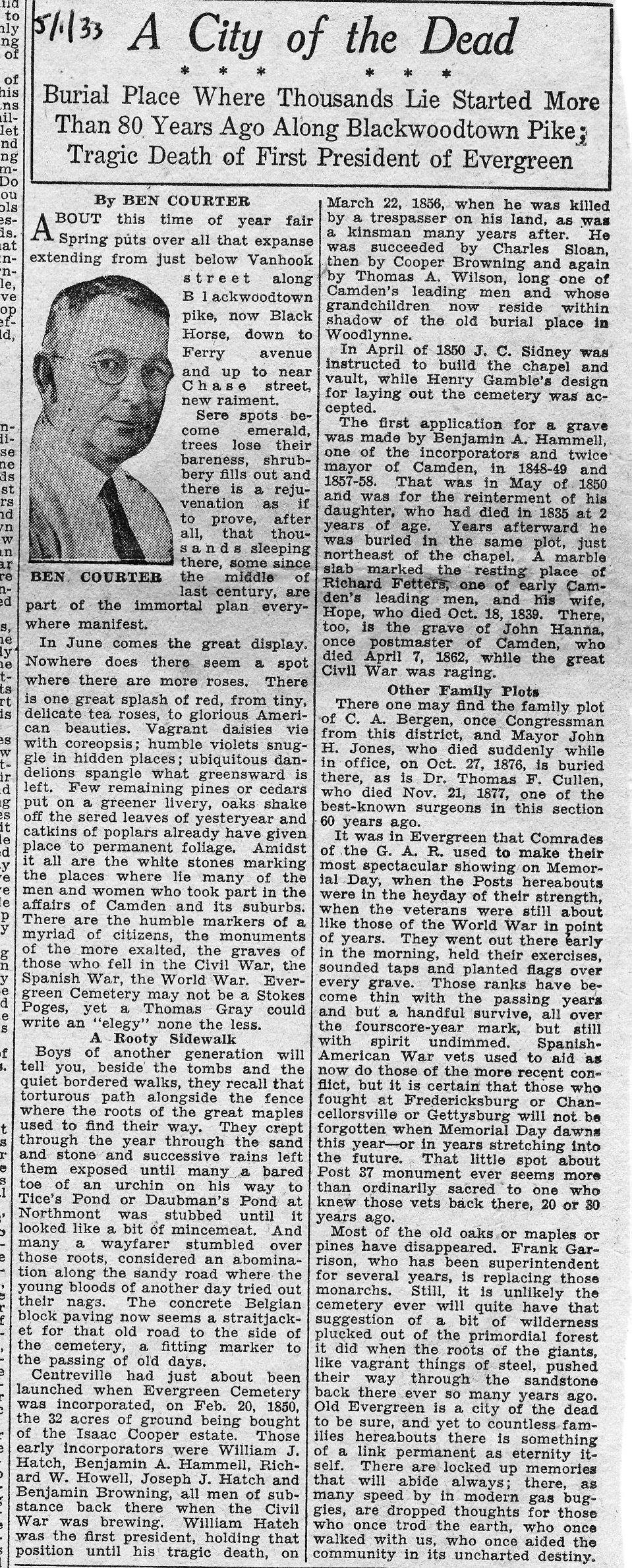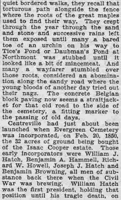 - Evergreen Cemetery - Isaac Cooper - William J. Hatch -