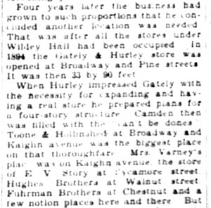 …continued… Broadway - Chestnut Street - Kaighn Avenue - Sycamore Street - Walnut Street Fuhrman Brothers - Hughes Brothers E.V. Story - Toone & Hollinshed - Mrs. Varney |