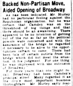 …continued… Broadway - Cooper Street Walt Whitman Hotel - Wilson Building - Non Partisan Movement |