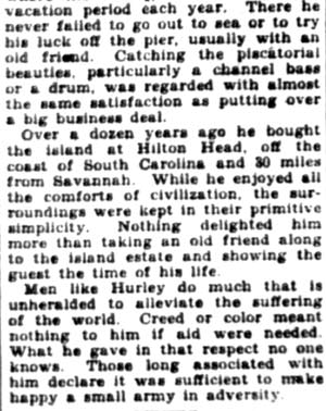 Leonard Hurley Dies at Hilton Head, S.C., Winter Estate HURLEY BASED SUCCESS IN LIFE AND IN BUSINESS ON SQUARE DEAL TO ALL By BEN COURTER |