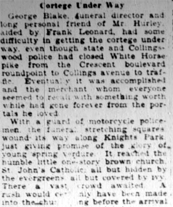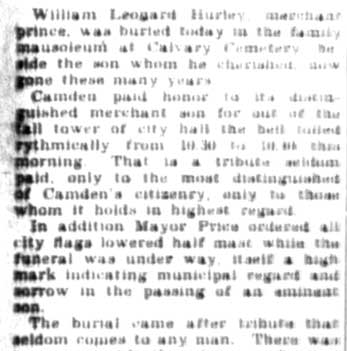 Thousands Pay Tribute To Merchant Prince at Home In Collingswood SOLEMN REQUIEM MASS AT ST. JOHN'S CHURCH Many Follow Funeral Cortege to Mausoleum in Calvary Cemetery By BEN COURTER |