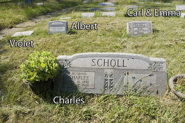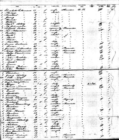 Over 1100 passengers were aboard RHAETIA when she reached New York in June of 1885. The Scholls are here on page 8 of the passenger manifest. Click on Image to