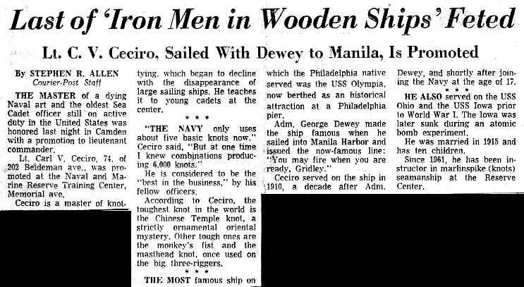 He taught marlinspike (knot tying) at the Naval and Reserve