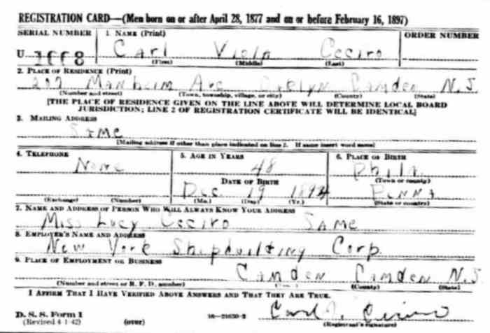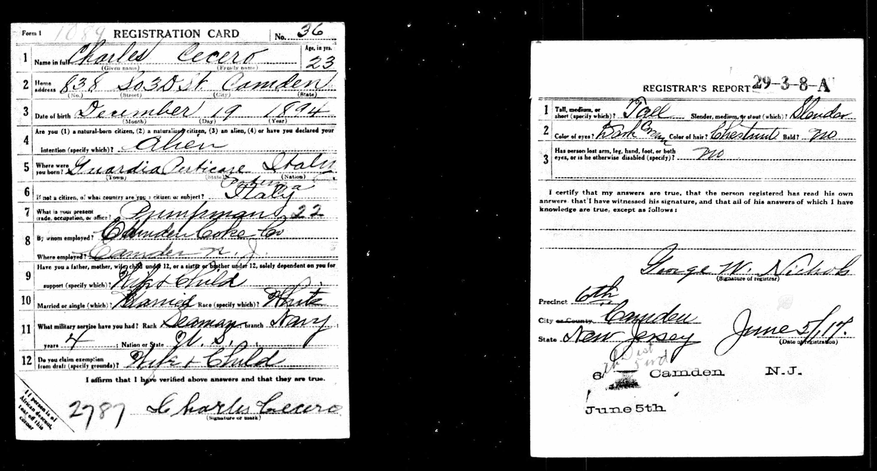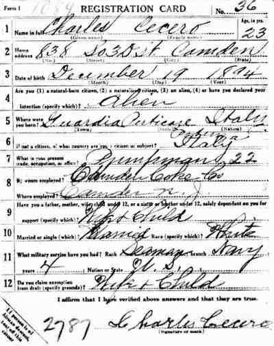 V. Ceciro married Margaret Lorraine in 1915. He was living in