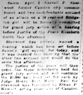 The political ax is hanging over the head of a Mt. Ephraim official on the charge he is assuming too much authority … The political ax hanging over the heads of the Delaware township cops is about to be enmeshed in litigation … One of the policeman is a member of the P.B.A. which will carry his fight into court in a case that will be a precedent for the other township cops, too … Herb Taylor will be county engineer if it goes to a Republican … It may be a Democrat however, and newest among the candidates, on that side of the ledger is former City Commissioner Carroll P. Sherwood … There may be only one assistant county solicitor instead of two in which case it will probably go to Carleton Rowand, city school board member …