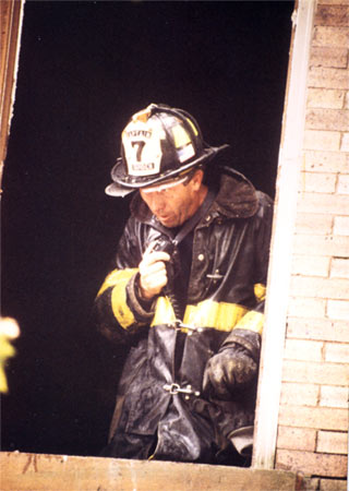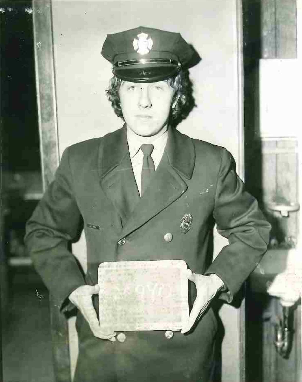 "A TIP O' THE HELMET TO" ……… Fr. Chuck Mayo of Ladder Co. 1, for his alertness and quick action in the preven-tion of serious injury and probable death to a brother member, while operating at 2nd Alarm-Box #1222, transmitted at 0348 hours on 2 January, 1977 for a fire located at 513 Cooper Street. Severely low temperatures and heavy icing conditions made roof level operations extremely hazardous. While working at roof level, atop the three-story fire building, another member slipped on an ice coated peaked roof above Chuck's position, and began his downward slide toward, and inevitably over the edge. Fr. Mayo's quick reflexes in grabbing the brother resulted in only a close call instead of a tragedy. A job well done. |