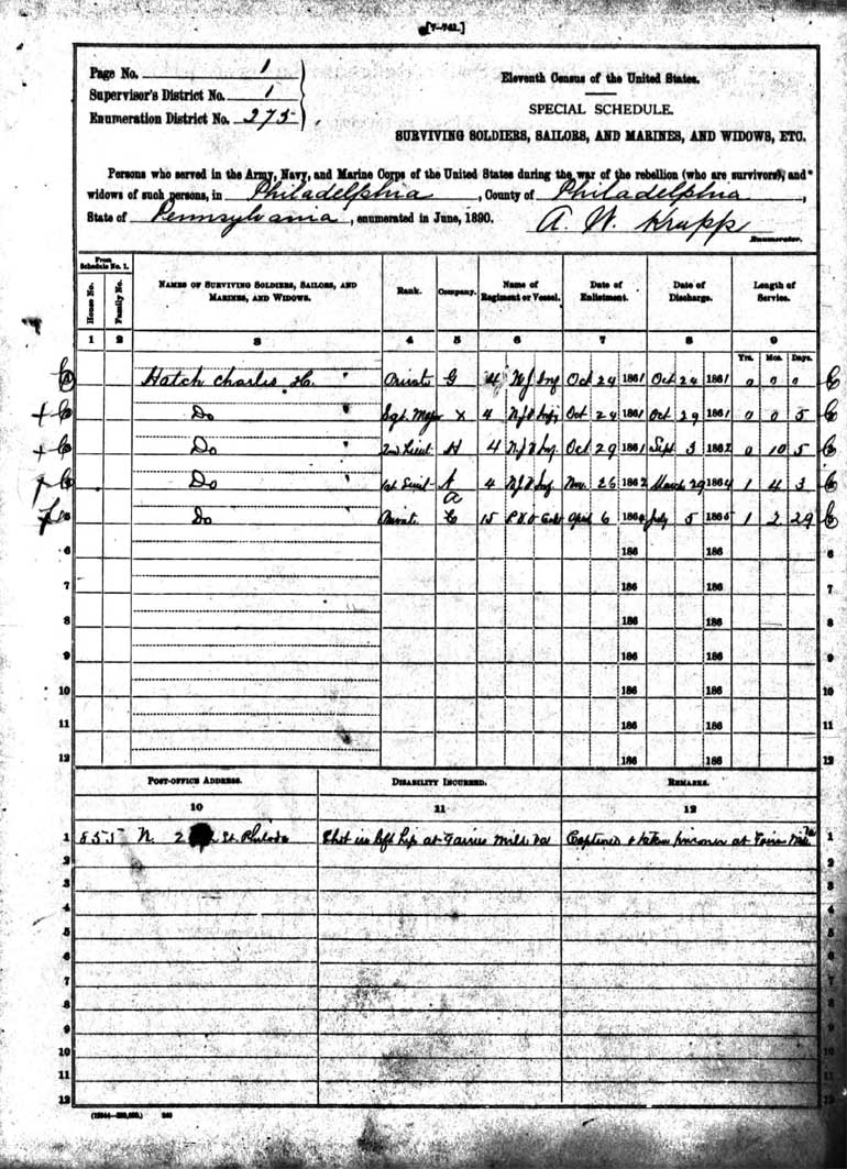 to their regiment. Charles Hatch's wound, however, rendered him