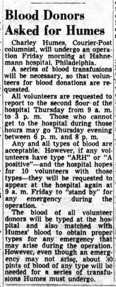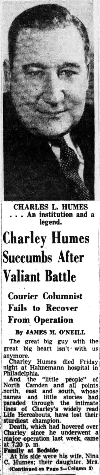 What Do YOU Think? By CHARLEY HUMES HOME, SWEET HOME! (And a trlllion scallions to the mugs who said it wouldn't come back) A two weeks' vacation sure piles up the stuff … Now who'd have thought that North Camden apartment house owner who won't allow children would give the O.K. for dogs in his dingy apartments … A bucket of heat to the chump … Then there is that house on Cooper street which harbors a mother who recently made a personal appearance at several roadhouses while her children were left to roam the streets. There's been a holdup at a certain place recently … And one of the victims was a cop … He had his gun taken away from him. (And failed to report the theft or banditry because the crooks returned the shooter following the affair and the proprietor won't tell because he hasn't his license yet) … It's all around town about that red-headed woman downtown (Yea, you're right, it's a frame house) … Those two ladies from the East Side who took over a certain politician (knowing he couldn't squawk) are all worried because the lad's influence at headquarters is beginning to tell … They tell me there is a dining car owner who totes a girl all the way from Collingswood to a Burlington county watering place for fun (and to get away from the missus)… The same bird recently paid off employees via the small-cost courts … What North Camden girl wears flamingo red (and black) pajamas … Wonder what that gal from Twenty-eighth and Stevens streets is doing lately since that noospaper fella doesn't come around any more (Maybe she gets solace out of that big white pooch, huh?) … There's a justice of the peace in Audubon who holds "regular" court, sometimes with a jury and everything … Camden attorneys recently argued their small-cause cases there… Even Prosecutor Baldwin has spent some of his eloquence before the "squire" … Among the "commuters" every Wednesday and Saturday are "Bo" Lynch, Bill Clisham, who admits he's hanging on the ropes already, and Leon Mickleman. Also comes the tale of that certain gentleman who doesn't like beer and won't drink over half of a glass (except that time a few weeks ago when he attended an affair and the beer was free- he drank 30 glasses and still maintains he doesn't like it) … down in West Collingswood they are calling Ike Hart the "Commodore of Newton Creek" … Maybe it's because of that canoe he paddles about in … Showing the same grit and determination that carried him through battle-scarred France and then on to heavyweight heights, Sergeant Ray Smith attended the Battle of the Maxies in New York last Thursday … . And with a broken back … The Sergeant had to bribe an attendant in a New York hospital to get his clothes for him so that he could get to the affair … And was there, gritting his teeth to hold back the pain, cheering his old friend Jack Dempsey's initial go as a big-time promoter… Now that certain amusements are about ready to fly their kite that certain politician (?) in Pennsauken is about ready to bust right open if he doesn't collect on their successors. Get Joe Feinstein, to explain "if and reverse" bet … And then try and borrow three bucks from him … Bobby Brest says he will demand a handicap from "District Attorney" Rocco Palese next time they play golf… Rocco winning five out of the last six games but Jack McCarroll says he can take them both if he had two broken arms … So What Do You Think? |