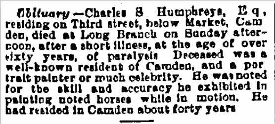 age of nineteen Humphreys was living in Camden, New Jersey, where on 10