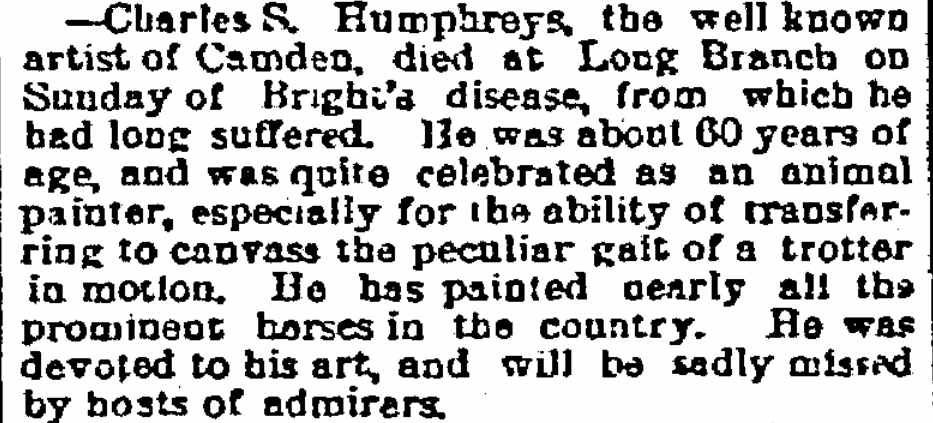 Philaelphia/Camden area. He reportedly exhibited horse paintings and