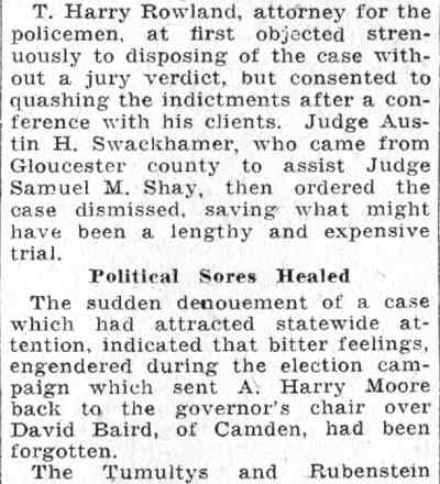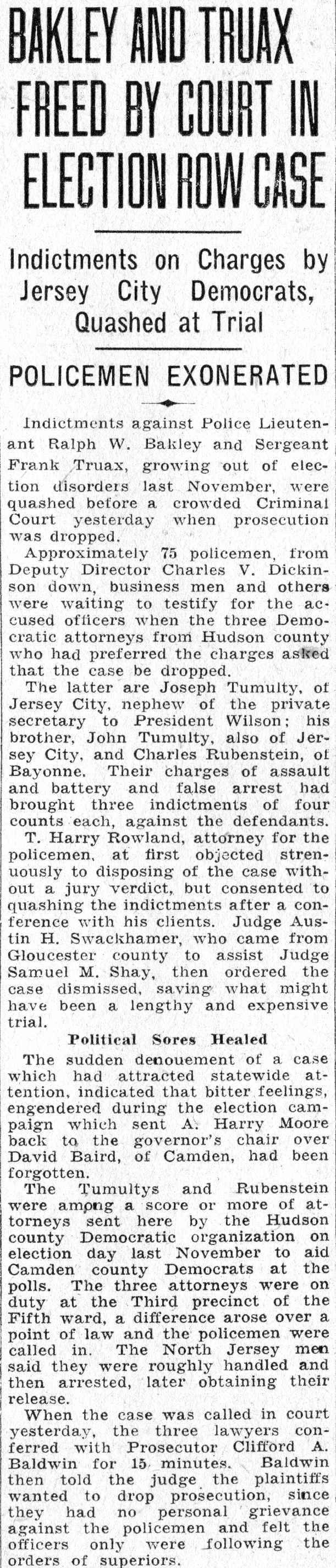 Bakley - Joseph Tumulty - John Tumulty - Charles Rubenstein T. Harry Rowland - Charles V. Dickinson - Clifford A. Baldwin Samuel M. Shay - Austin H. Swackhamer - Frank Truax A. Harry Moore - David Baird Jr. |
