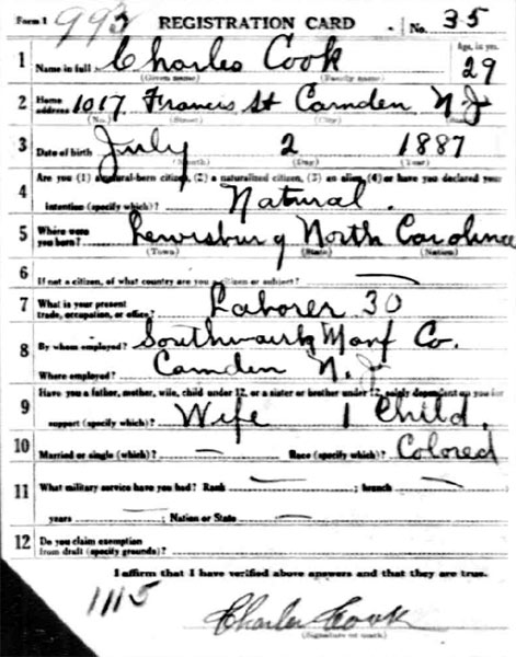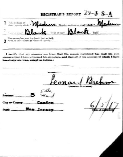 The registrar who filled in this card was C. Leonard Brehm, local politician and bar-owner |
