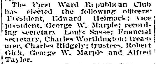"Whereas, It has pleased the Almighty Ruler of the Universe to again visit us by the hand of death, and to call away to a higher life our beloved and esteemed fellow member and worker, Charles Worthington, one who always had the interest and principles of Republicanism at heart; therefore be it