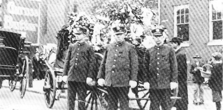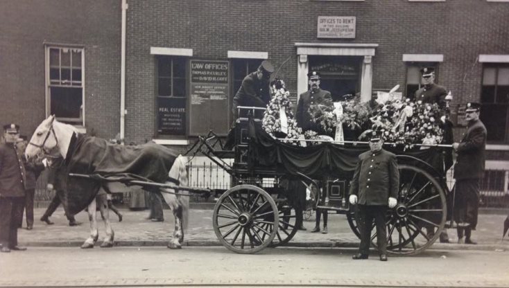 There were forty policemen in dress uniform with Chief Gravenor at their head. There were twenty-six fire heads from Philadelphia, with Chief William Murphy in the van, a tribute in itself of more than passing moment. There was the caisson on which was the black draped casket containing the body of he who all honored. There was the little red car in which Chief Worthington was wont to speed through the city at every alarm and there was his helmet and coat. There was Acting Chief Stockton and forty of the men who fought flames under the direction of he who lay so still. There as the family in cabs with curtains drawn, the members of City Council and the active pall bearers- Daniel Leach, Peter B. Carter, james white, William Patterson, Elmer Burkett, Samuel Harring.