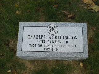 Charles Worthington was buried in an unmarked grave at Arlington Cemetery in Pennsauken NJ. Friends and members of the Camden Fire Department raised money and furnished a headstone in September of 2019. |
