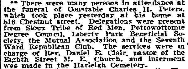 Dodson - James Evans - George Hanson William M. Butts - John Foster - Marwood Derrickson - Alfred Reed C. Henry Peters - Daniel F. Hurley - Ida Fisher - Laura LeCount |