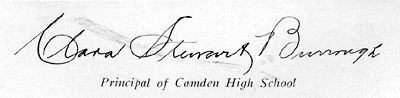 "I greatly deplore the fact that Miss burrough has passed away. She was a wonderful leader. I was among her first students at camden high school, graduating under her in 1897. To her I owe much of my success. I had a warm affection in my heart for her. She aided the faculty and school to attain greater heights. Her devotion to the Camden school system was a monument to education 'of 'our city."