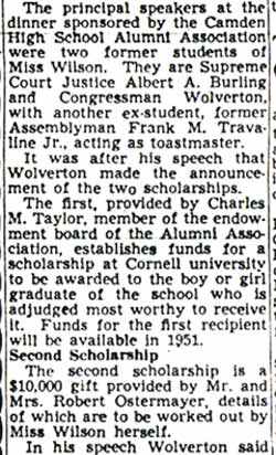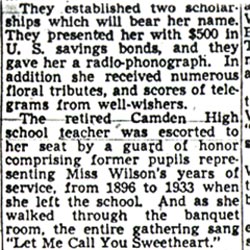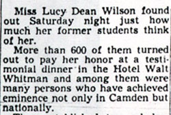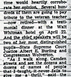 William A. Rogers, president of Camden High School Associate Alumni: "It will be hard to replace Miss burrough in the school system. I regret she could not have lived to see the fruits of her efforts. I saw her in the hospital and she expressed the same regret."