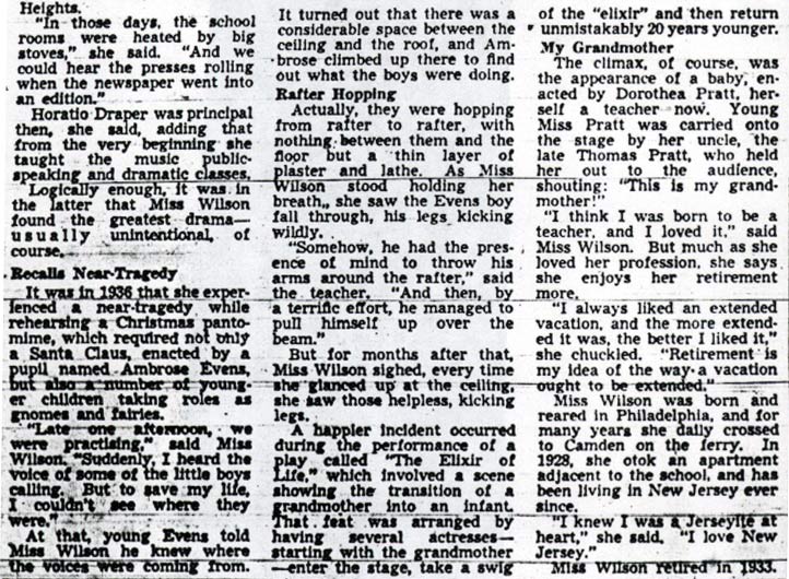 It was about the period when Miss Clara S. Burrough, long principal of the High School and now recovering from an operation in Cooper Hospital, was principal of Fetters that the big change came that the classes were composed largely of children of foreign parentage. Often they did not know a single world of English. Teachers had their problems and Miss Burrough will undoubtedly recall the great task involved in really making the “melting pot” down there in the old school at Third and Mount Vernon Street effective. But she and the valiant corps under here direction tackled it and by the time Miss Burrough was elevated to the principalship of Camden High, a very deserved promotion, by the way, the problem had been totally solved.