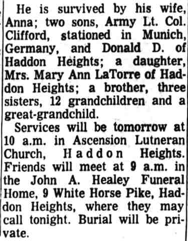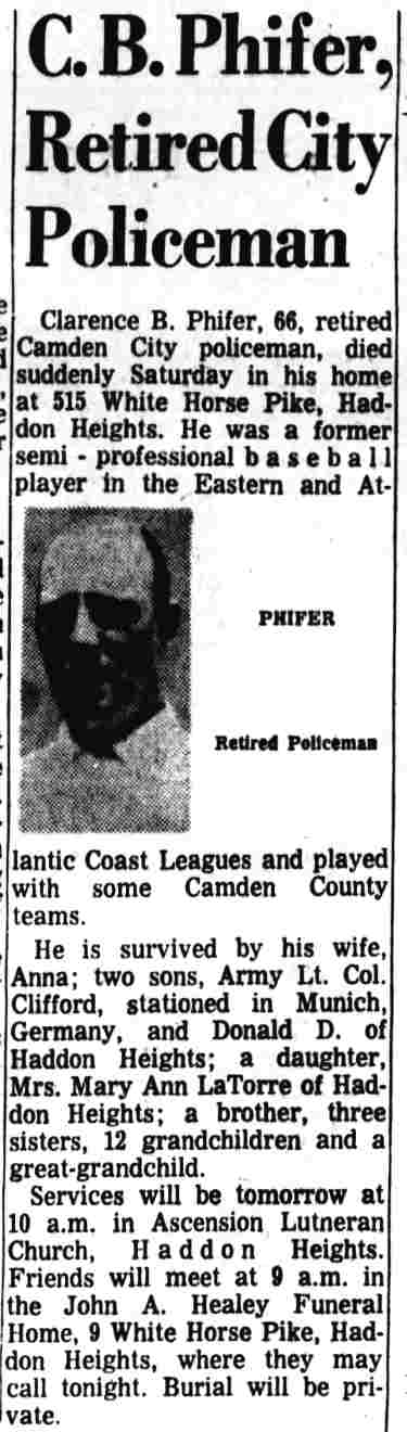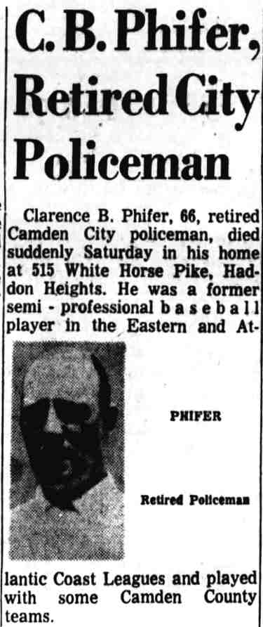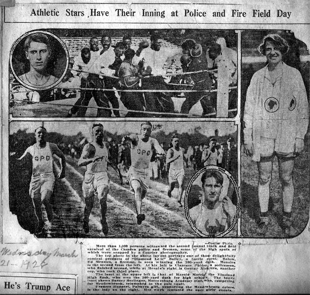 Central Camden beat the Camden Police quintet to make it two straight in the Municipal basketball circuit at Convention Hall last night. By blanking Clarence Phifer, and holding Ott Laxton down to six points the Central outfit spiked the Coppers’ attack. Clayton and Grover Wearshing did the heavy work for the winners. Clayton held Phifer without a field shot and tallied four times from the field. Wearshing bagged a trio of double-deckers. Gus Koerner was ejected from the game when Referee Keneman ruled him off the floor for abusive language. The Wayne dribblers battled down South Camden under a 46-20 score in the other combat Jimmy Reed and Devlin were the bright stars for the winners.