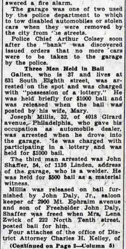 ORDERS CITY DRIVE ON NUMBERS RING ISSUES DECREE FOR POLICE TO TIGHTEN UP ON GAMING RACKET FBI Agents Join Probe Here of $50,000 Bank PHILA. LEADERS HELD LOTTERY CZARS HERE |