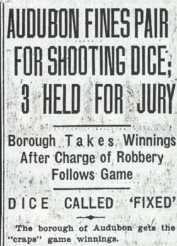 HELD IN THEFT OF CRAPS WINNINGS Money Won in Audubon Taken From East Camden Man, Cops Told |