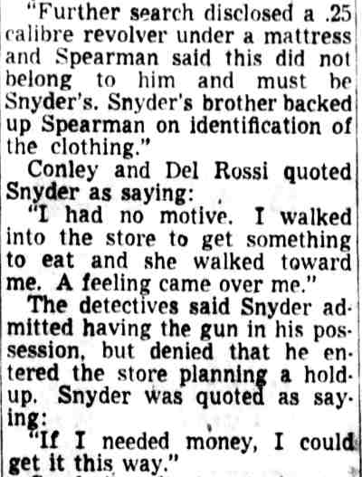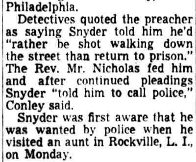HELD IN THEFTS REFUSES TO “SQUEAL” Foster G. Stickler, 16, of 825 Linden Street, arrested yesterday for allegedly robbing parked cars refused to reveal the name of a companion who aided him in the robberies, police said. . The youth admitted another boy was with him but he refused to give his name. "Nothing doing, I won't squawk," he told Detective Sergeant Clifford Del Rossi, Detective Donald Swissler and Patrolman John Ferry. Patrolman Ferry took the youth into custody at Eighth and Linden streets, on a hunch, when he found a dozen automobile keys in the youth’s pockets. Stickler was taken to police head quarters and booked "on suspicion for further investigation," where Del Rossi joined Patrolman Ferry in questioning Stickler. After about 20 minutes the youth admitted, according, to Del Rossi and Ferry, that a fountain pen in his possession was stolen. Stickler also said he stole a woman's gold ring, a flashlight and a man's gold watch. He hid the flashlight and gave the watch to another boy to sell, police learned. The two detectives and patrolman took the youth to his home where, according to Del Rossi, they found the flashlight. Stickler then led the way to a lot in the rear of 813 Linden Street where he measured off two paces from a fence and then stepped off four paces in another direction, stooped and began digging in the soil with his hands. He unearthed a man's watch valued at $60 and described by police as the one which the youth said he gave to a boy to sell. Nothing else was recovered from the "treasure hole." Persons who have lost articles from their automobiles are requested to go to the detective bureau to see if they can identify the youth as having been around the machines. Police said Stickler made a practice of watching parked cars. |