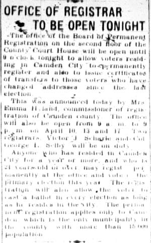 Camden Courier-Post April 3, 1928 Victor J. Scharle