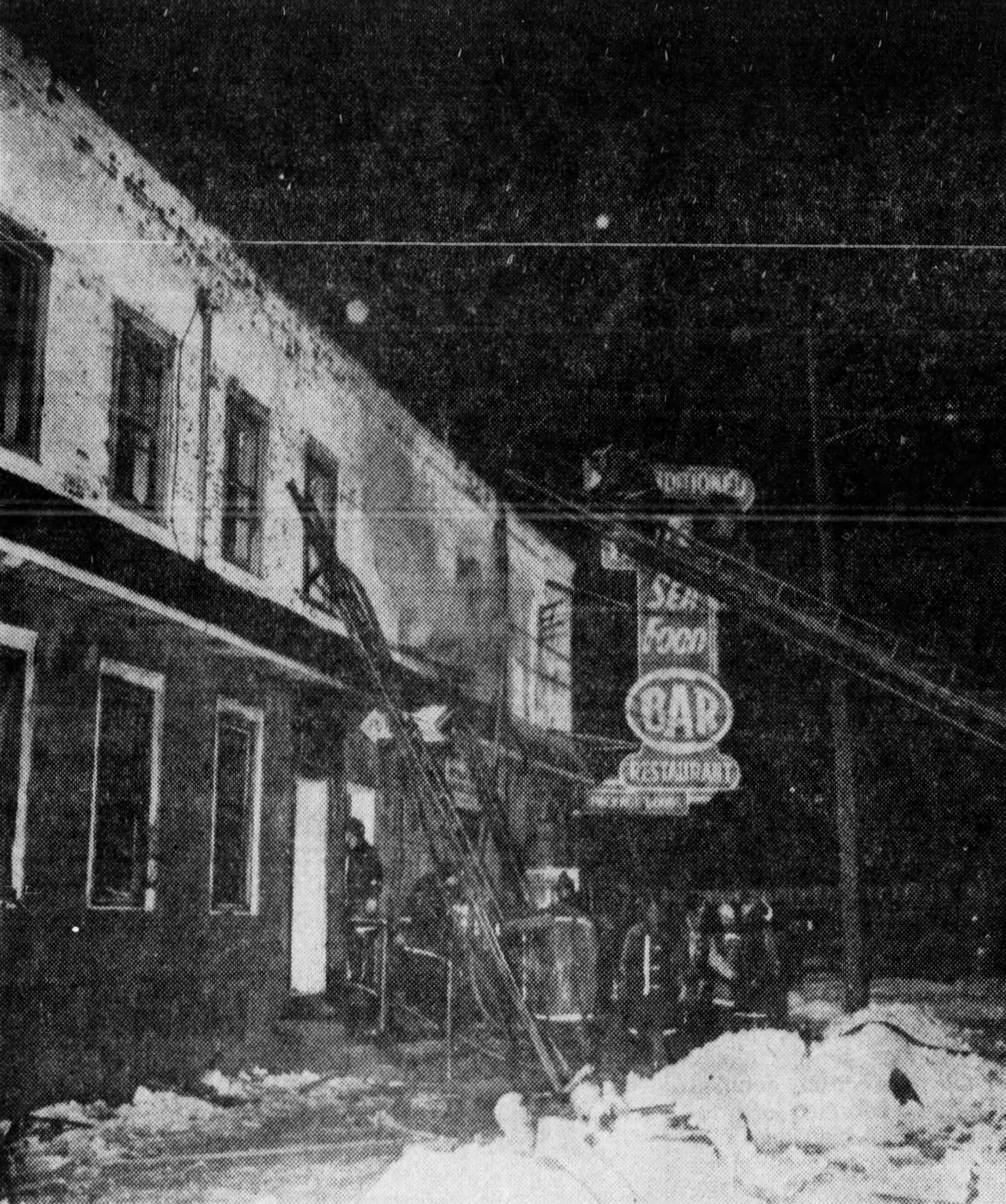 Trapped in Blaze Saved by Firemen City firemen fought smoke, flames; snow and a biting cold during the night and early morning hours as a rash of fires 6everely damaged four buildings and destroyed a tavern. According to Public Safety Director Keith Kauffman, at one point only two engine companies were not actively fighting the blazes as seven engine companies, three ladder companies, the rescue squad and three battalion chiefs were at the fire scenes. At the site of the worst fire, 5th and Mickle Streets, police and firemen braved dense smoke and fierce flames to rescue four elderly persons trapped in first, second and third floor apartments. Started In Tavern Lounge The blaze, which broke out in the lounge of Ray's Tavern, was discovered by Patrolmen Augustus Balzano and Anthony Saponare at 3:58 a.m. after they were alerted of smoke by highway employees battling the second snowstorm of the week. The two policemen, after radioing the alarm, kicked in the door of the tavern and raced through the smoke and flames to rescue Mrs. Agnes Lockhart, 58, from her upstairs apartment. The patrolmen took Mrs. Lockhart to Cooper Hospital where she was admitted with a cut head and smoke inhalation. Minutes later firemen, headed by Battalion Chief Biaggio Ardire, arrived. Ardire said the tavern was engulfed in smoke and flames. He said the flames leaped from the tavern roof to a luncheonette and apartment building next door. Ardire said firemen raised a ladder to the third floor of the second building where Mrs. Mabel Seward, 64, was hanging from a window ledge. However, fireman were hampered in the rescue attempt by the narrow space of the alley and could only hold the screaming woman until other firefighters could make their way to the third floor window from inside the building. The rescuers, wearing face masks, wrapped Mrs. Seward in blankets and carried here through the flames to safety. Two Carried Out At the same time, more fire fighters entered the burning building and carried out Mrs. Viola Lagerprantz, 65, who lived in a rear apartment on the first floor and John J. Smith, 86, from a second-floor apartment. All the victims were taken to Cooper Hospital for smoke inhalation treatment and released an hour later. Kauffman ordered the victims, still wrapped in blankets, taken to fire headquarters at 3rd and Arch Streets and notified city welfare authorities. The Welfare Department obtained temporary housing for the three victims at Volunteers of America headquarters, 828 Market Street. Each victim lost all possessions in the blaze. Additional Alarms Ardire, at, 4:27 a.m. called for additional fire crews and an hour later requested more aid. Battalion Chief Daniel Jiannetto's unit answered the first distress call while Acting Battalion Chief Arthur Batten's men arrived on the second plea. Batten's unit had been fighting two North Camden blazes since 10:53 last night. Ardire said that when firemen attempted to get into the buildings, the fire was raging forward, backward, and straight up the stairwells out of control. The owner of the luncheonette, Dominic Padulla; arrived at the scene about 5:30 a.m. Padulla and his brother, Frank, who also had been out, live on the first floor. Canteen Truck on Scene Volunteers of America Canteen truck with Colonel William Gwynne also was at the scene and served firemen coffee and donuts. Fire Chief Edward Michalak said he has ordered a complete investigation of the fire. Kauffman said 5th Street south of Mickle and Mickle Street east of 5th has been closed to traffic indefinitely. In the two other fires in North Camden, a grocery store was damaged at 442 N. 9th Street, and two vacant buildings at 623-625 North Front Street were damaged. Grocery Store Blaze Batten said a defective chimney apparently caused the grocery store blaze which raged through joists and partitions. The store is operated by Benjamin Lamberte while the building is owned by Mrs. Sarah Schecter of Baird Boulevard according to the battalion chief. Batten's crew were forced to make two trips to the vacant buildings as wind whipped flames. He said the fire probably was caused by vagrants seeking shelter from the snowstorm. Before the firefighters could take off their fire apparel, they were dispatched to the 5th and Mickle Street blaze. |