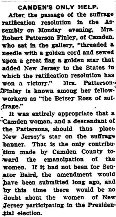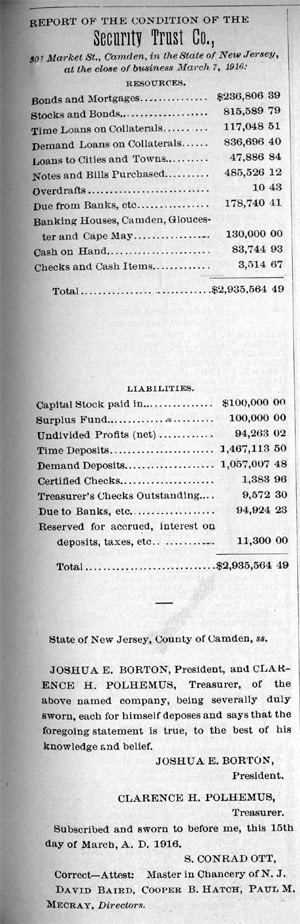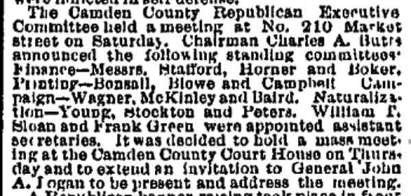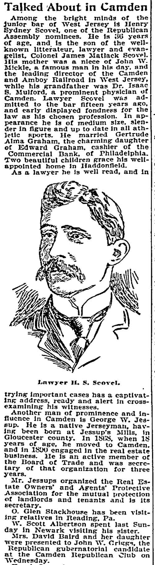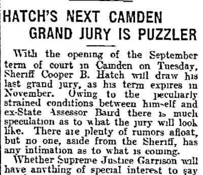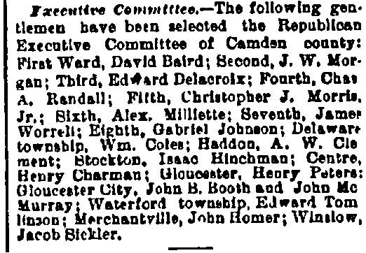 Browning Samuel K. Robbins - Floyd H. Bradley - Assemblyman Tatem - Albert DeUnger George W. Whyte - Joshua A. Borton - j. willard morgan - John J. Burleigh Frank T. Lloyd - Isaac Moffett - Charles Van Dyke Joline - Judge West Charles H. Ellis |