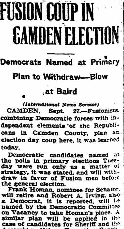 Trenton Evening Times September 27, 1923 Frank Homan Robert A. Irving Volney Bennett Jr. Horace L. Brewer David Baird Sr. |