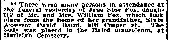 Jane Stoy Fox - William Fox - david baird sr. - Cooper Street |