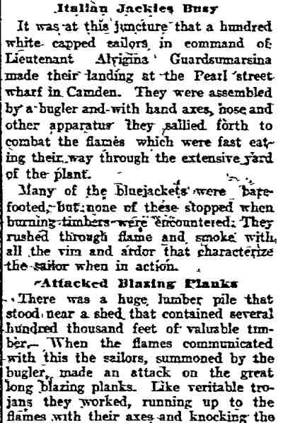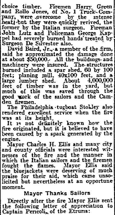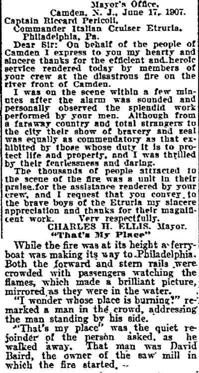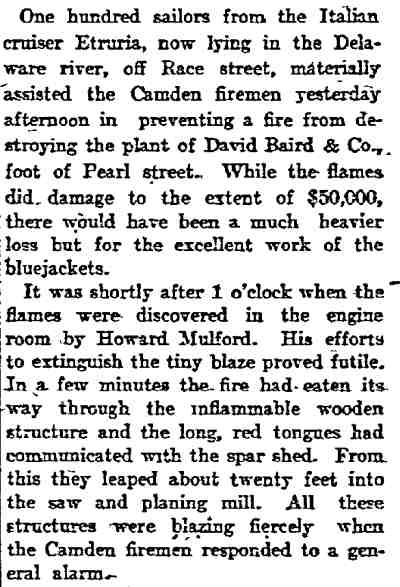 Baird Jr. Captain Ricardo Pericoli - Italian Royal Navy cruiser R.M. Etruria - Howard Mulford Ladder Company 1 - Pearl Street |
