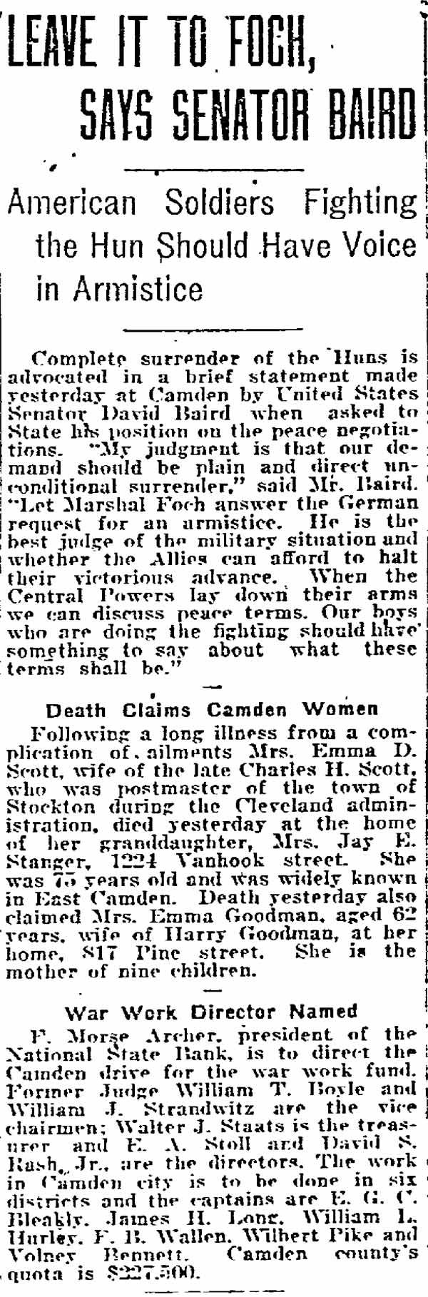 BAIRD BOULEVARD in Camden was named in honor of David Baird Sr. |