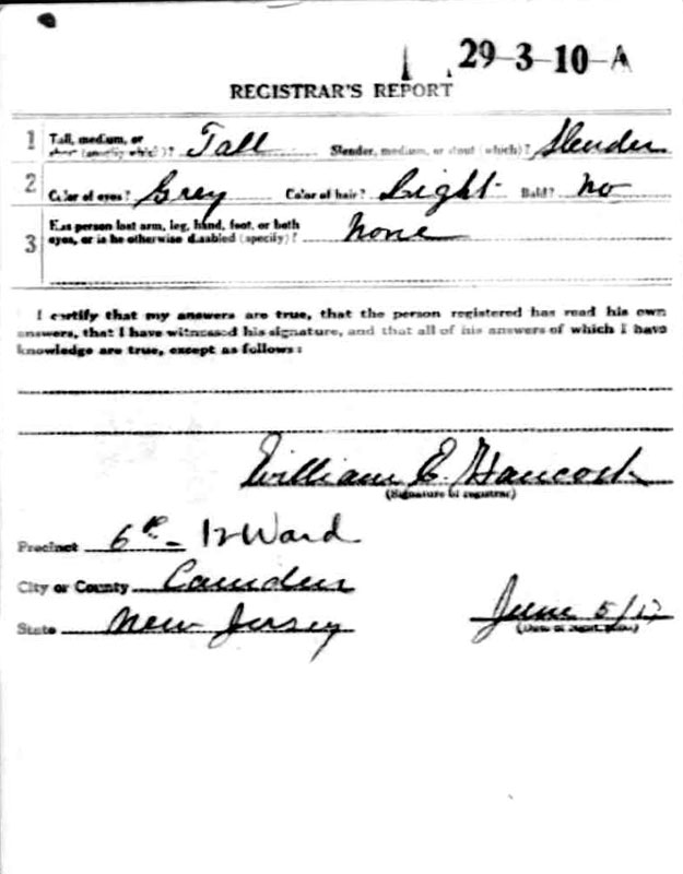 The family was, according to the 1890 City Directory, living on North 26th Street near Erie Street in Stockton. Stockton consisted of all the land in present-day Camden north of the Cooper River, that is, all of what today is known as Cramer Hill and East Camden. Erie Street was renamed Saunders Street not long after the merger to avoid confusion with Erie Street in North Camden.