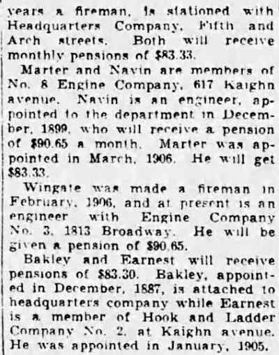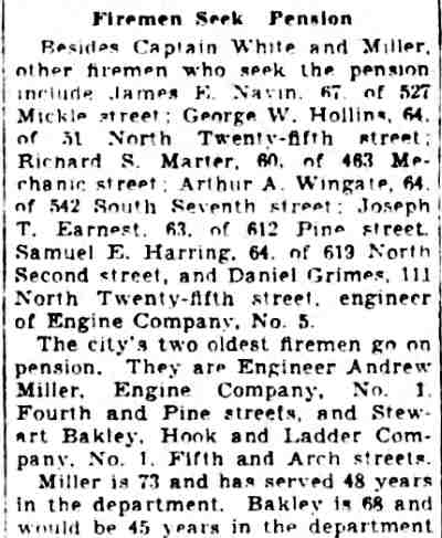 Haines William H. Miller Jr. - Charles H. Ellis - William G. Schregler - Wilson Ashbridge Charles Powell - "Honest John" Brunen - James Navin - George W. Hollins - Richard S. Marter Arthur Wingate - Joseph Earnest - Samuel Harring - Daniel Grimes - Andrew Miller - Steward Bakley |
