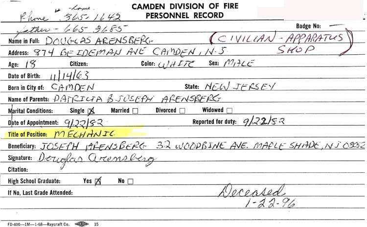 CAMDEN FIRE DEPARTMENT UNIFORMED PERSONNEL INDEX