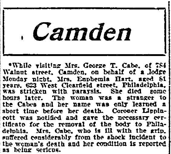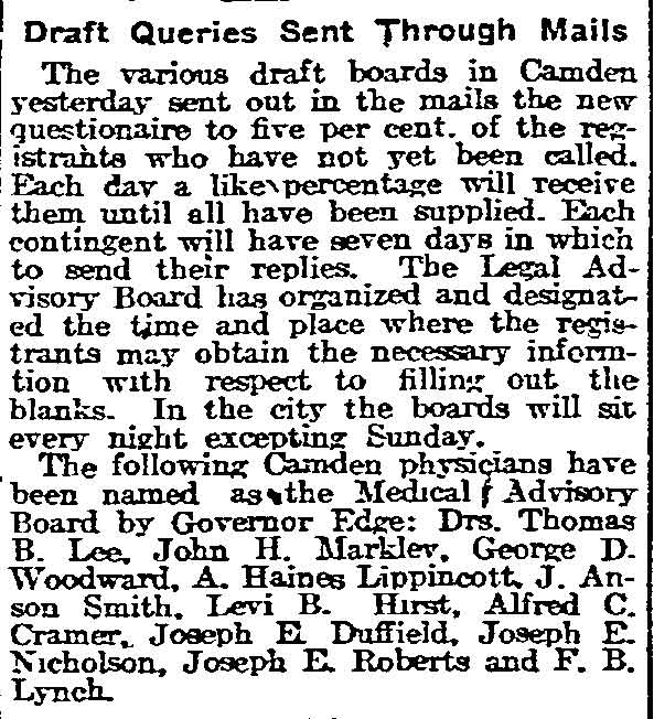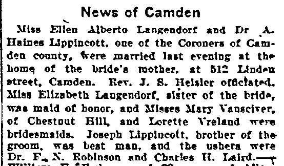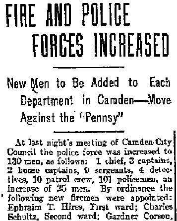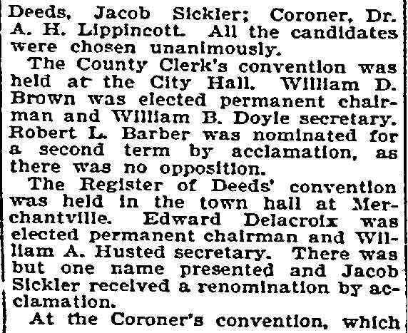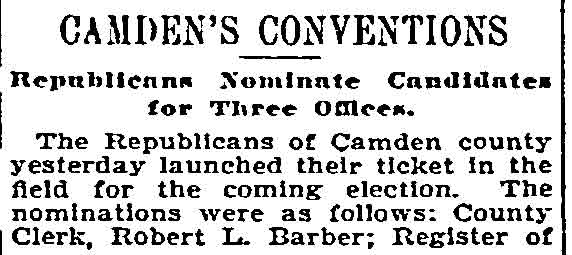 Foster - John H. Beard - Edward Zane Harry G. Geesey - John J. Doonan - Charles Kleeman - Stockton Park Hotel West Jersey Hotel - John Polk - East Camden |