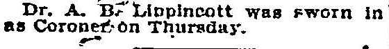 A.H. Lippincott - Dr. Thomas B. Lee - Dr. John H. Markley Dr. George D. Woodward - Dr. J. Anson Smith - Dr. Levi B. Hirst Dr. Alfred C. Cramer - Dr. Joseph E. Duffield Dr. Joseph E. Nicholson - Dr. Joseph E. Roberts - Dr. F,B. Lynch |