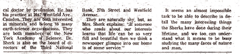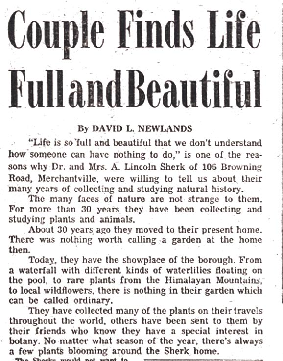 By 1947 Dr. A Lincoln Sherk and family had moved to 106 Browning Road in Merchantville NJ, a block which included Albert S. Woodruff at 101; contractor Edward Ellis at 125; the Bottomley family, who were connected to the Howland Croft & Sons Co. textile mill in Camden, at 129; E. Huelings Antrim at 131, and the family of the late Judge Samuel M. Shay, at 121. Former Camden Mayor Roy R. Stewart lived at 226.